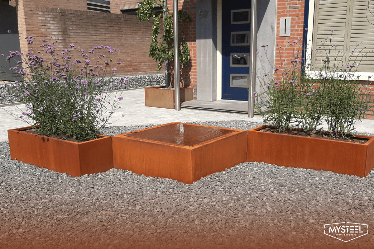 Corten steel does well against water. However, if it remains underwater all the time, an additional rust layer can develop. The material cannot rust through. It is important to ensure proper drainage and the right maintenance of corten steel products in your garden. This way, you can continue to enjoy the durability and beautiful appearance of corten steel in your outdoor space.