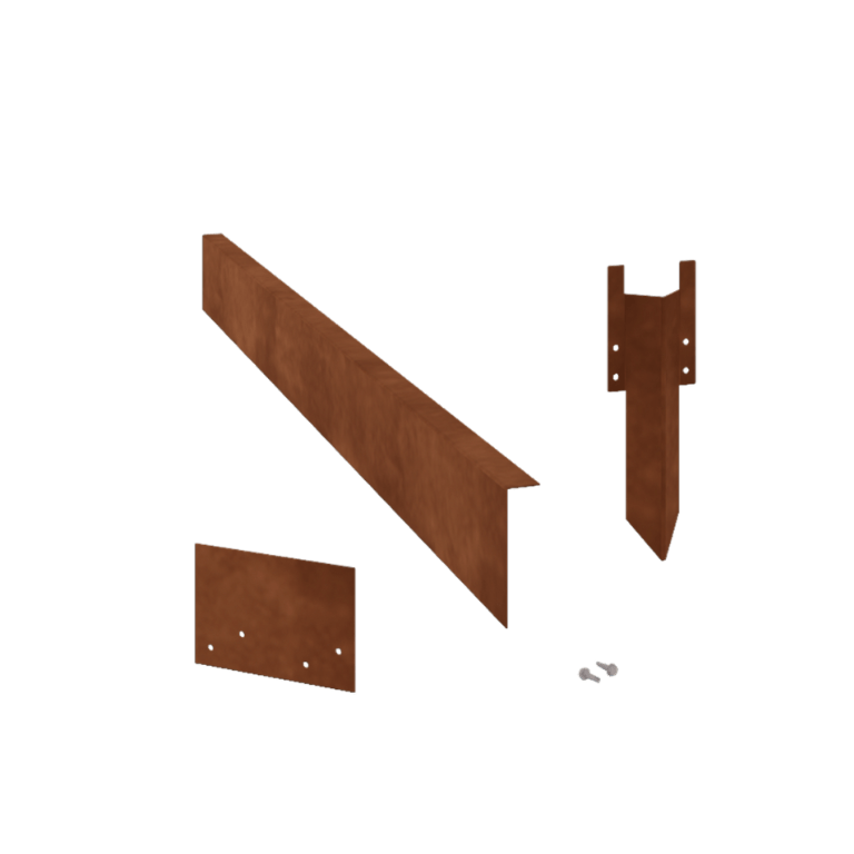Material These fences are made of high quality Corten-A steel plate. This type of metal has the unique property of forming a very dense oxide skin (rust layer). Rusting is therefore impossible. Because of the dense oxide layer, the deeper lying material is protected from oxygen, which slows down the oxidation considerably while the corrosion continues. The edge protection is delivered untreated, in the gray metal color. The start of the rusting process begins within the first 2 months, no treatment is required. During the rusting process, the edge fence may shed. Corten steel is a metal alloy consisting of iron and to this are added copper, phosphorus, silicon, nickel and chromium.