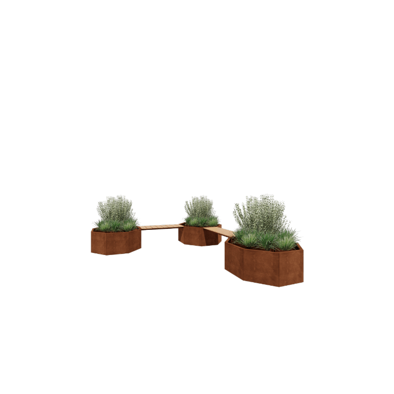 The Vegas type is a combination of two or more planters with a bench. This creates a green and natural seating area. If you already have planters and would like a bench between them, our benches are also available separately.