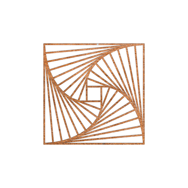 This wall art is made of high-quality Corten-A steel plate. This type of metal has the unique property of forming a very dense oxide skin (rust layer). Rusting is impossible. The dense oxide skin shields the deeper material from oxygen, greatly slowing oxidation while corrosion continues. The wall decoration is delivered unrusted, in the gray metallic color. The start of the rusting process begins in the first 2 months, no treatment is required for this. During the rusting process, the product may come off.