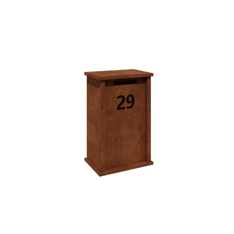 Unpack the letterbox immediately upon delivery to prevent moisture stains. During the rusting process, some rust residue may come off, which is normal and temporary. Maintenance is minimal: keep the letterbox clean with a soft brush and rinse off loose rust particles with water if needed. This will preserve its robust appearance for years to come.