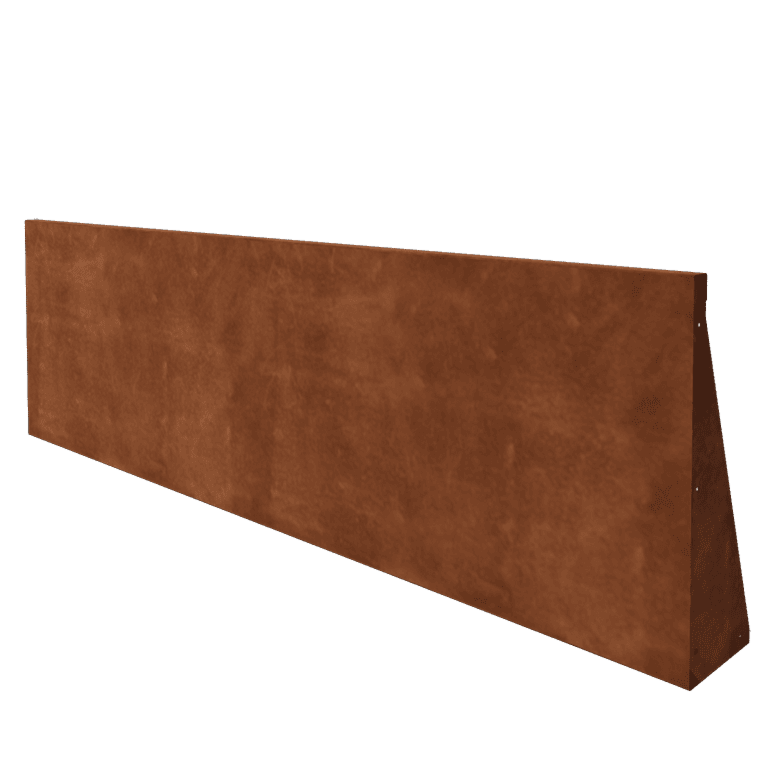 The retaining wall requires minimal maintenance. Keep the surface clean by gently removing any dirt with a soft brush and water. Avoid using harsh cleaning agents. Over time, the retaining wall develops its characteristic rust color without needing any additional protective coatings.