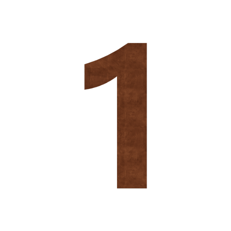 This house number features spacers, which ensure that the house number is mounted with a small distance away from the wall. The spacers provide a sleek end result where it looks like the house number is floating. When mounting, you screw the supplied threaded pins into the thread of the spacers and then slide them into a (sealant-filled) drill hole in the wall. After the sealant dries, the house number remains firmly fixed in the wall. The house number is delivered unrusted, in the gray metal color. The start of the rusting process begins in the first 2 months, no treatment is needed for this. During the rusting process, the house number may come off.