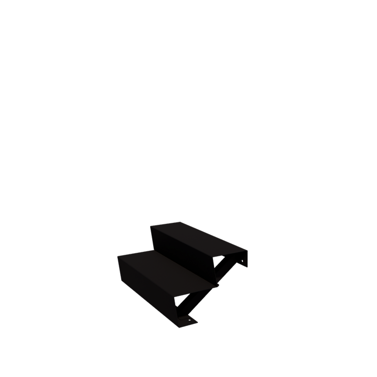 The stairs are made of 2 mm thick Sendzimir galvanized steel and feature a durable double powder coating in RAL9005 matte black. This electrostatically applied coating protects the steel against UV radiation and weather influences, keeping the stairs long-lasting, attractive, and rust-free.