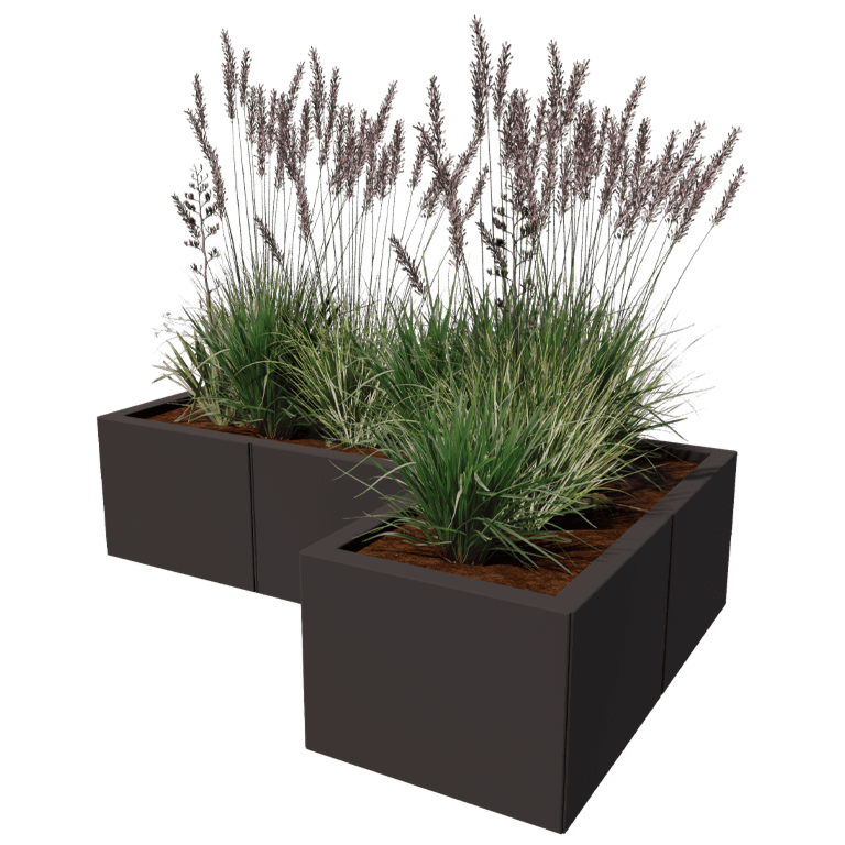 This planter is a modular steel planter that comes as a kit. The planter is constructed from individual panels and corner pieces. The planters can be connected completely blind. There are no fasteners in sight. Because of our modular system, very large dimensions are also possible. By using corner pieces, unique shapes are possible that are not available anywhere else as standard. See the manual for more information.