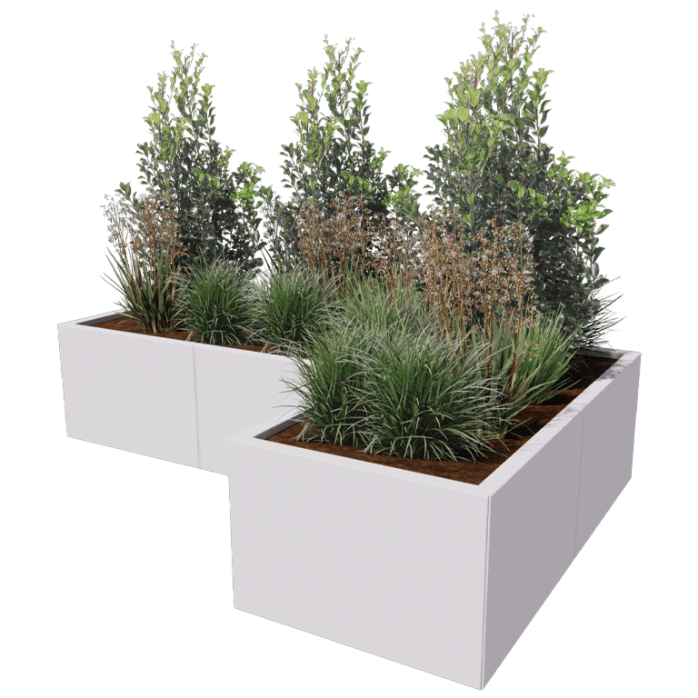 This planter is a modular steel planter that comes as a kit. The planter is constructed from individual panels and corner pieces. The planters can be connected completely blind. There are no fasteners in sight. Because of our modular system, very large dimensions are also possible. By using corner pieces, unique shapes are possible that are not available anywhere else as standard. See the manual for more information.